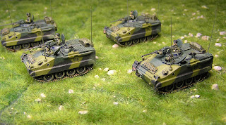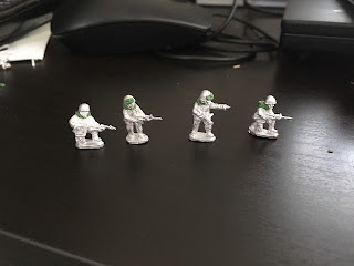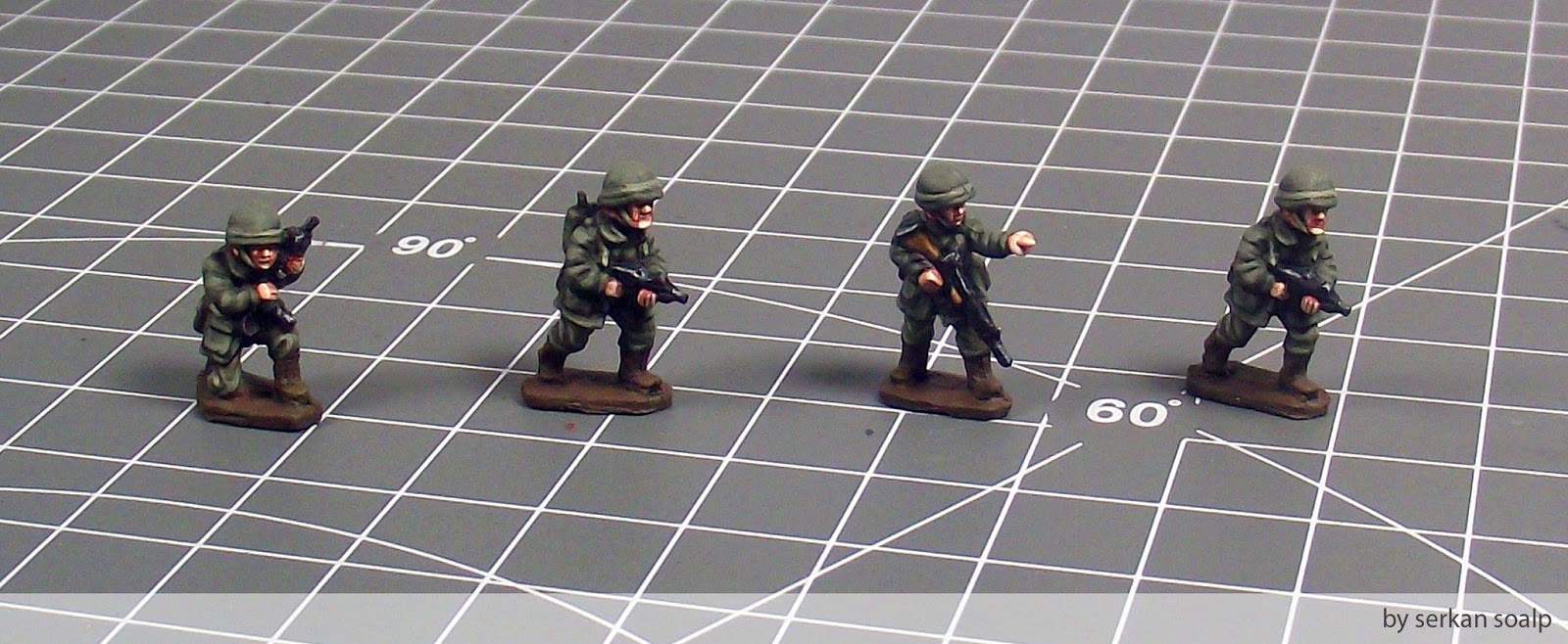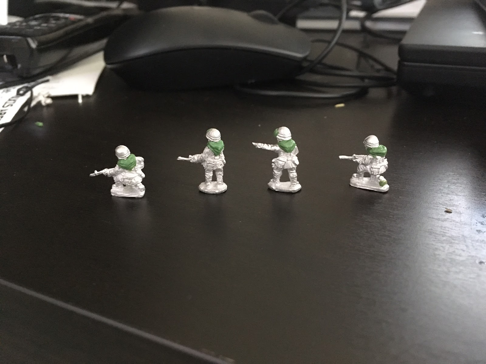 Since I have some time to my hobby again, Ive been thinking on the Falklands War. I had was chatting with a mate about the conflict and he was asking on Argentinian infantry figures and I started thinking the PSC metal range of Dutch infantry should work out quite nice. They have M1 helmets and SLR, GPMG, 50 cal weapons and so did the Argentinian forces. Being chunky they also look like cold weather gear, with the exception of the large hoods and googles some of the troops had.